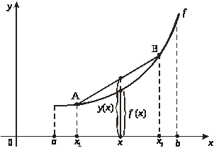 При выполнении условий теоремы внутри отрезка [a, b] обязательно найдется хотя бы одна точка x, такая, что касательная к графику функции f (x) в точке (x, f (x)) параллельна секущей, проходящей через точки А (а, f (а)) и В (b, f(b)) (см. рисунок).