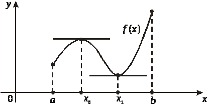 Заметим, что наряду с локальными минимумом и максимумом определяют так называемые глобальные минимумы и максимумы функции f(х) на отрезке [a, b]. На рисунке точка х = а – точка глобального максимума (в этой точке функция f(х) принимает наибольшее значение на отрезке [a, b]), точка х = х>3> – точка соответственно глобального минимума.