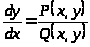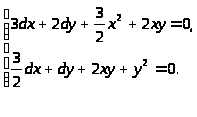 Имеет частный интеграл y2+αxy+βx2+γy+δx+σ=0, коэффициенты которого выражаются формулами:
