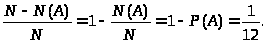 А чему равна вероятность того, что среди выбранных трех карт есть пиковая дама? Число всех таких исходов нетрудно посчитать, надо просто из всех исходов N вычесть все те исходы, в которых дамы пик нет, т. е. вычесть найденное в примере 3 число N(A). Затем эту разность N—N(A) в соответствии с классической вероятностной схемой следует поделить на N. Вот что получим:
