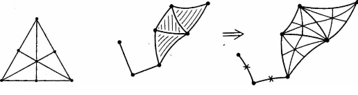 Доказательство. Выберем в нашем пространстве X вершину е>0> и соединим с ней остальные вершины путями. Это можно сделать, так как пространство n-связно и, в частности, линейно связно. (Пути могут пересекаться) Используя теорему о клеточной аппроксимации, мы можем добиться того, чтобы эти пути лежали в одномерном остове пространства X. Пусть s>i> - путь, соединяющий вершину е>0> с вершиной е>i>. Приклеим при каждом i к X двумерный диск по отображению нижней полуокружности в X при помощи пути s>i> (рис.10).