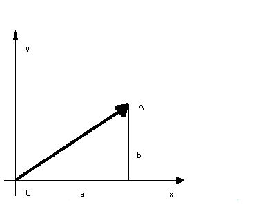 Поставимо у відповідність кожному комплексному числу вектор з початком у точці О(0;0) і кінцем у точці М(a;b). Ви знаєте, що такий вектор називають радіус – вектором, а його проекції на осі є координатами вектора. Отже, можна сказати, що геометрични зображенням комплексного числа z = a + bί є радіус – вектор з координатами a і b. Відповідність між множиною комплексних чисел, з одного боку, і множиною точок або векторів площини, з іншого, дає змогу комплексні числа називати векторами аьо точками і говорити, наприклад, про вектор a + bί або про точку a + bί.