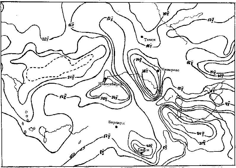 Считалось, что эта неравномерность проявляется, в основном, благодаря особенностям рельефа, а на равнине, вдали от гор и морских побережий, изофены будут идти более или менее равномерно. Но еще А.А. Браунер установил, что одни и те же виды прилетают на севере Украины раньше, чем в Бессарабии и Причерноморье. Это связывалось с миграцией их по разным пролетным путям (Пузанов, 1957). Г. Гроте обратил внимание на то, что в Аскании-Нова птицы появляются на 2 недели позже, чем на Черноморском побережье и на Днепре, где пролетет основная масса водоплавающих (Соколов, 1926). К. Бречер (1935) установил, что кукушка в Средней Европе быстрее продвигается вдоль рек, даже на равнине. У. Сливинская (1938) пишет, что ход изопиптез может зависеть не только от особенностей ландшафта, но и от пути пролета птицы. Постепенно с появлением более крупномасштабных фенокарт эта мысль углубляется и развивается. На картах С.И. Хомченко (1972) по прилету кукушки (Cuculus canorus) на юге Западной Сибири изофены образуют глубокие выступы, которые он называет "путями проникновения" (рис. 2). М.А. Родионов (1978) писал, что птицы вырываются вперед по экологическим руслам пролета. И, наконец, В.В. Серебряков (1978) предложил определять по авифенологическим картам пролетные пути.