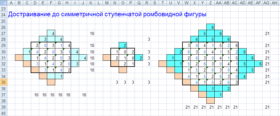Достраивание до симметричной ступенчатой ромбовидной фигуры