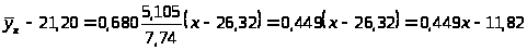 Уравнение линейной регрессии Y на Х имеет вид: