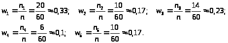Запишем распределение относительных частот :