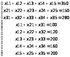 Математическая модель транспортной задачи состоит в нахождении такого неотрицательного решения системы линейных уравнений