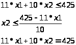 – В ячейку А3 вводим формулу для ограничения: =11*с1+10*с2.
