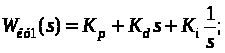 Введем в прямую цепь ПИД регулятор, а в обратную ПД.