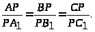Точки A>1>, B>1>, C>1 >лежат соответственно на сторонах BC, CA и AB треугольника ABC. Известно, что отрезки AA>1>, BB>1>, CC>1 >пересекаются в точке P, причем