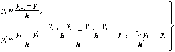 Заменим производные так называемыми односторонними конечно-разностными отношениями: