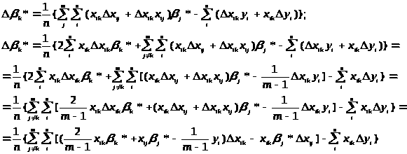 pod_sum_vnutr[i]:=abs(2*matrica_X[i,k]*vector_beta[k,1]/(m-1) +matrica_X[i,j]*vector_beta[j,1]-vektor_Y[i,1]/(m-1))*pogr_X[k] +abs(matrica_X[i,k]*vector_beta[j,1])*pogr_X[j]