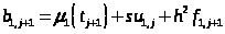 b[1] [j + 1] = mu_1 ((j + 1) * tau) + s * u[1] [j] + pow (h, 2) * f (h, (j + 1) * tau);