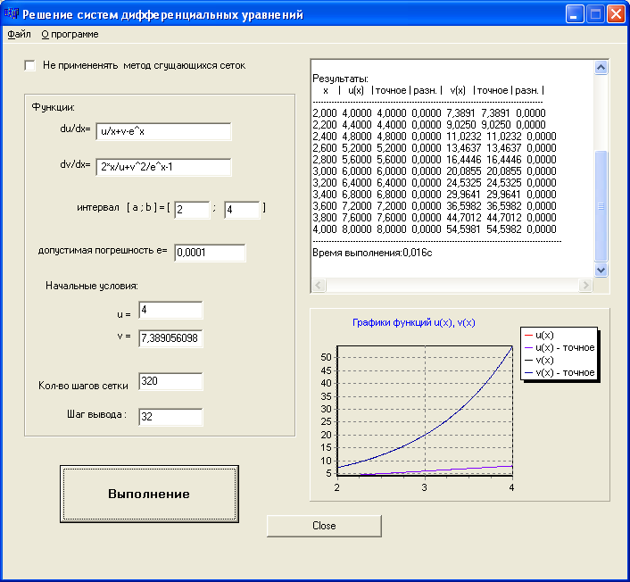 – графики полученных и точных решений.