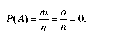 2. Вероятность невозможного события равна нулю. В самом деле, невозможному событию не может благоприятствовать ни одно из элементарных событий, т.е. m = 0, откуда