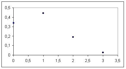 Известна вероятность события А: р (А) = 0,3. Дискретная случайная величина - число появлений А в трех опытах. Построить ряд распределения случайной величины ; найти ее математическое ожидание m>> и дисперсию D>>.