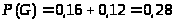 Р ( = 1) = Р ( = 1, = 0) + Р ( = 1, = 1) + Р ( = 1, = 2) = 0,16 + 0,08 + 0,06 = 0,3