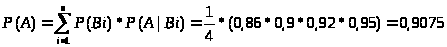 Р (A|В>1>) = 0,86; Р (A|В>2>) = 0,9; Р (A|В>3>) = 0,92; Р (A|В>4>) = 0,95.