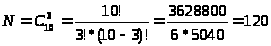 Число N всех равновероятных исходов испытания равно числу способов, которыми можно из 10 деталей вынуть три, т.е. числу сочетаний из 10 элементов по 3: