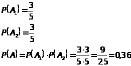 А=А>1>+А>2>; P(A)=P(A>1>)+P(A>2>)-P(A>1>A>2>); P(A>1>A>2>)=0
