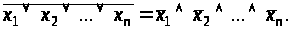 1. Отрицание логической суммы нескольких аргументов равно логическому произведению отрицаний этих же аргументов: