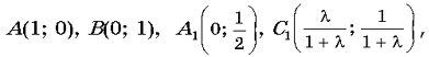 Введем систему координат так, чтобы прямая CA служила осью Ox, прямая CB — осью Oy (луч CA определяет положительное направление оси Ox, а луч CB — оси Oy); за единицу измерения примем длину отрезка AC.