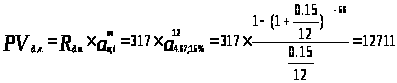 Для определения текущей стоимости потока платежей по двум контрактам необходимо сложить приведенные к текущему моменту два потока платежей: лизинговые платежи и платежи за поручительство: