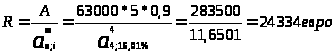 Расчет коэффициента приведения ренты постнумерандо при верхнем значении i.