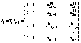 Фактически это матричное произведение преобразует все компоненты промежуточной матрицы по формулам, применяемым в методе исключения Гаусса. Особенность этого процесса заключается в том, что диагональные элементы исходной и всех промежуточных матриц не должны быть нулевыми.