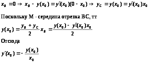 Для решения этой задачи обозначим через y (x) уравнение искомой линии и пусть M (x>0>, y>0>) - ее произвольная фиксированная точка.