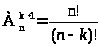 Аk>n> = n(n-1)(n-2)...(n-(k-1)). (1)