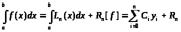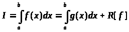 Обычный прием построения квадратурных формул состоит в замене подынтегральной функции f(x) на отрезке [a,b] интерполирующей или аппроксимирующей функцией g(x) сравнительно простого вида, например, полиномом, с последующим аналитическим интегрированием. Это приводит к представлению