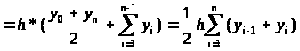 Для нахождения определенного интеграла методом трапеций площадь криволинейной трапеции также разбивается на n прямоугольных трапеций с высотами h и основаниями у>1>, у>2>, у>3>,..у>n>, где n - номер прямоугольной трапеции. Интеграл будет численно равен сумме площадей прямоугольных трапеций (рисунок 4).