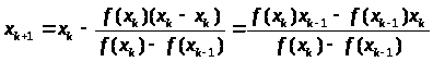 Таким образом, если нам известно приближенное значение корня уравнения, то полученное уравнение позволяет его уточнить. Понятно, что процесс уточнения можно повторять многократно, до тех пор, пока значение функции не будут отличаться от нуля на величину меньшую, чем заданная точность поиска. Очередное k-е приближение находится по формуле