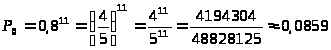 2) Вероятность принятия всех 11 сообщений без искажения равна произведению всех вероятностей принятия каждого из них без искажения: