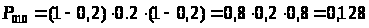 Вероятность того, что первый стрелок попадёт в мишень, а второй и третий – промахнутся равна произведению этих вероятностей:
