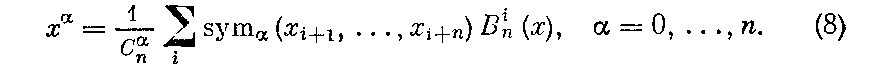Полученные формулы (8) решают вопрос о представлении произвольного многочлена п-й степени через нормализованные В-сплайны.