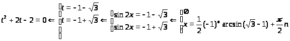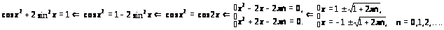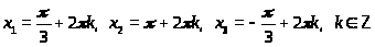 Итак, основная схема отбора корней состоит в следующем. Находится наименьший общий период всех тригонометрических функций входящих в уравнение. На этом периоде отбираются корни, а затем оставшиеся корни периодически продолжаются.