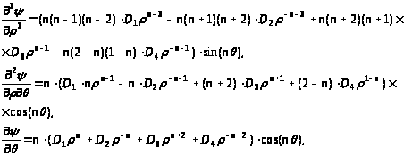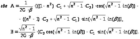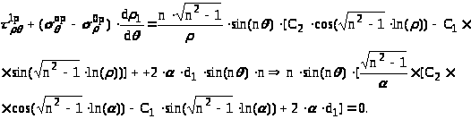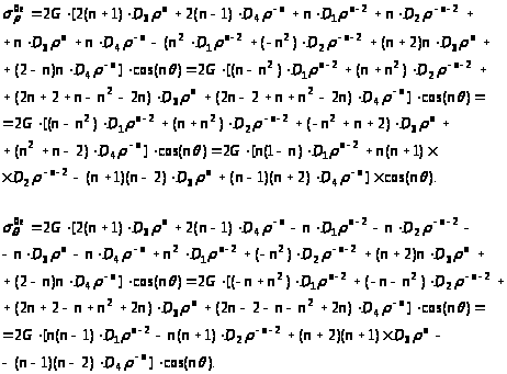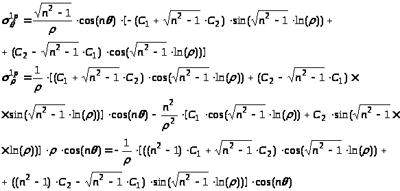 Исследуя осесимметричную деформацию трубы, получено решение задачи в общем случае (n>1). Решение записано в виде (2.3.10), где коэффициенты имеют вид (2.3.11) – это в пластической зоне. В упругой зоне – это формулы (2.3.20), а коэффициенты – (2.3.21).