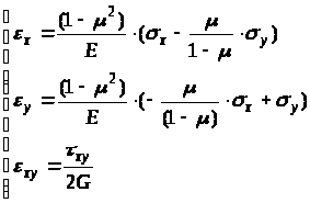Последняя группа уравнений – это уравнения, которые выражают зависимость между напряжениями и деформациями элемента. Именно в этих уравнениях учитываются механические свойства материала, их называют физическими.