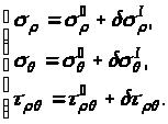 Задача решена путём приведения к линеаризованному виду. На первом этапе получено решение осесимметричного (невозмущенного) состояния трубы в напряжениях, деформациях и перемещениях – формулы(2.3.3), (2.3.5), а также неоднородное нелинейное уравнение для нахождения радиуса пластической зоны (2.3.6).