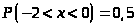 Определяем вероятность выполнения неравенства -2 < x < 0: