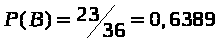 Тогда из таблицы несложно найти общее число равновозможных исходов испытания: n = 36; и число исходов, благоприятствующих появлению события В: m = 23. В результате получаем:
