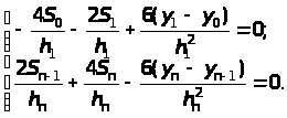 Это условие порождает систему линейных уравнений относительно наклонов сплайна S>i>, которая содержит n - 1 уравнение и n + 1 переменную. Чтобы определить два недостающих уравнения используются граничные условия. Например, для естественного кубического сплайна: