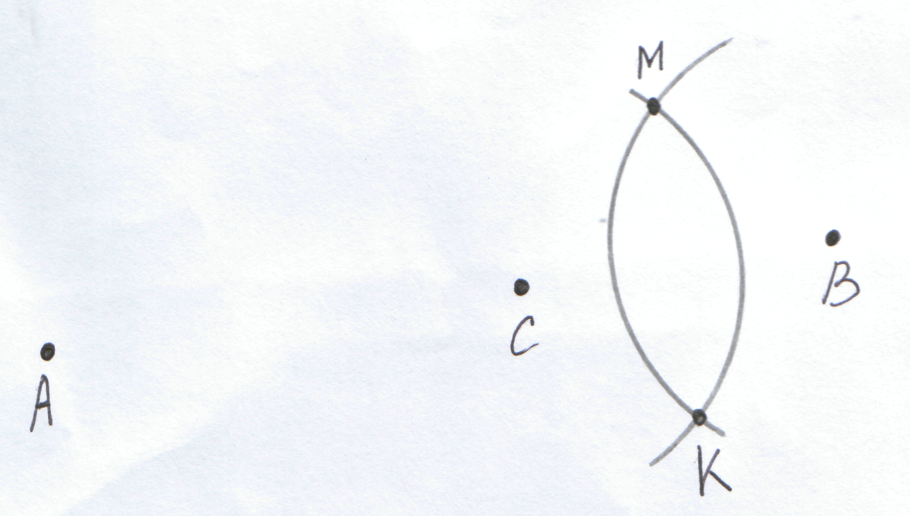 Через точки В и С проводим две полуокружности до получения двух точек пересечения М и К.