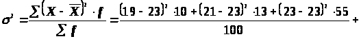 Сначала необходимо найти середины интервалов. Затем на основании имеющегося распределения определим выборочные среднюю и дисперсию.