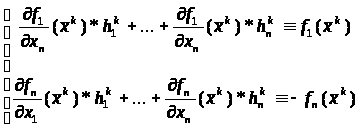Система (5.3) представляет собой систему линейных алгебраических уравнений для поиска компонента вектора поправки hk.