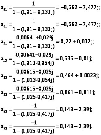 P>5321>>н>=a>53>·a>32>·a>21>=(0,143-2,39j)∙(0,464+0,0023j)·(0,22+0,032j)=