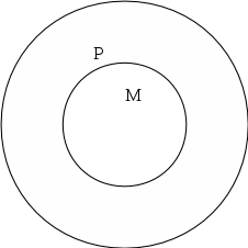 Силлогизм (от греч. сосчитывание) – дедуктивное умозаключение, в котором из двух суждений, имеющих субъектно-предикатную форму, следует новое суждение (заключение), имеющее также субъектно-предикатную форму. Посылки должны быть распределены, во-первых, по логическому квадрату, во-вторых, иметь средний термин Простой категорический силлогизм – это умозаключение об отношении двух крайних терминов на основании их отношения к среднему термину. Силлогизм состоит из трех категорических суждений, два из которых называются посылками, третье – заключением. Понятия, входящие в состав силлогизма, называются терминами силлогизма. Различают больший, меньший и средний термины. Большим термином называется понятие, соответствующее предикату заключения (Р). Меньшим термином называется понятие, соответствующее субъекту заключения (S). Средний термин, понятие, входящие в обе посылки и отсутствующее в заключении (М). Слова «так как», «потому что», «поскольку» указывают, что заключение располагается перед посылками; слова «следовательно», «поэтому», «значит» - на заключение. Посылки стоят над чертой, а заключение – под чертой. В силлогизме (в умозаключении), как и во всяком логическом выводе, есть свои правила. Их можно проиллюстрировать с помощью кругов Эйлера: