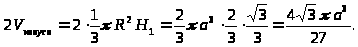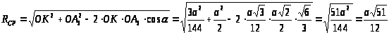 RВ = RН = R – радиус окружности, описанной около равностороннего треугольника со стороной а (грани октаэдра). Следовательно,